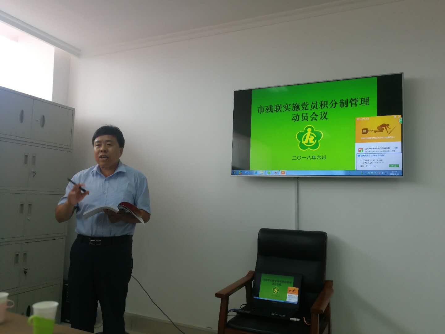 为贯彻落实全面从严治党、建设高素质专业化干部队伍的要求,进一步创新党员教育管理的长效机制,调动广大党员立足岗位走在前、创先争优作表率的积极性、能动性、创造性,6月29日上午,市残联召开了实施党员积分制管理动员会议,对党员积分制管理实施工作进行了安排部署。