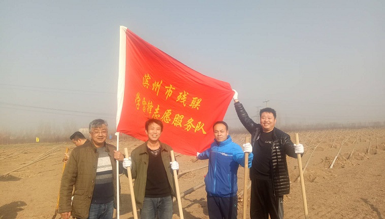 2018年3月12日上午,市残联志愿者在滨城区杨柳雪镇参加集体植树活动,以迎接第40个植树节。